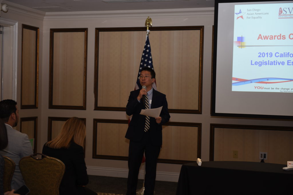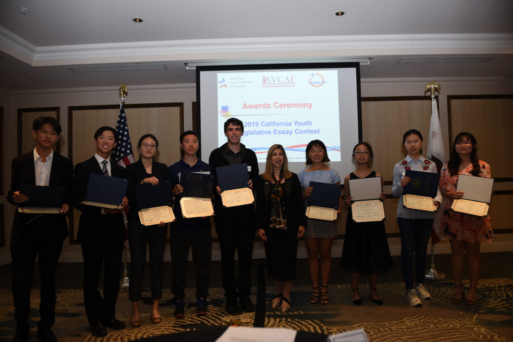 由圣地亚哥亚裔平权会基金会(SDAAFE)、硅谷华人协会基金会(SVCAF)、橙县俱乐部(TOC)三个加州地方组织联合举办的加州青少年立法论文大赛于11月2日下午5:30在圣地亚哥Hilton Garden Inn San Diego Del Mar酒店举行了隆重的颁奖典礼。