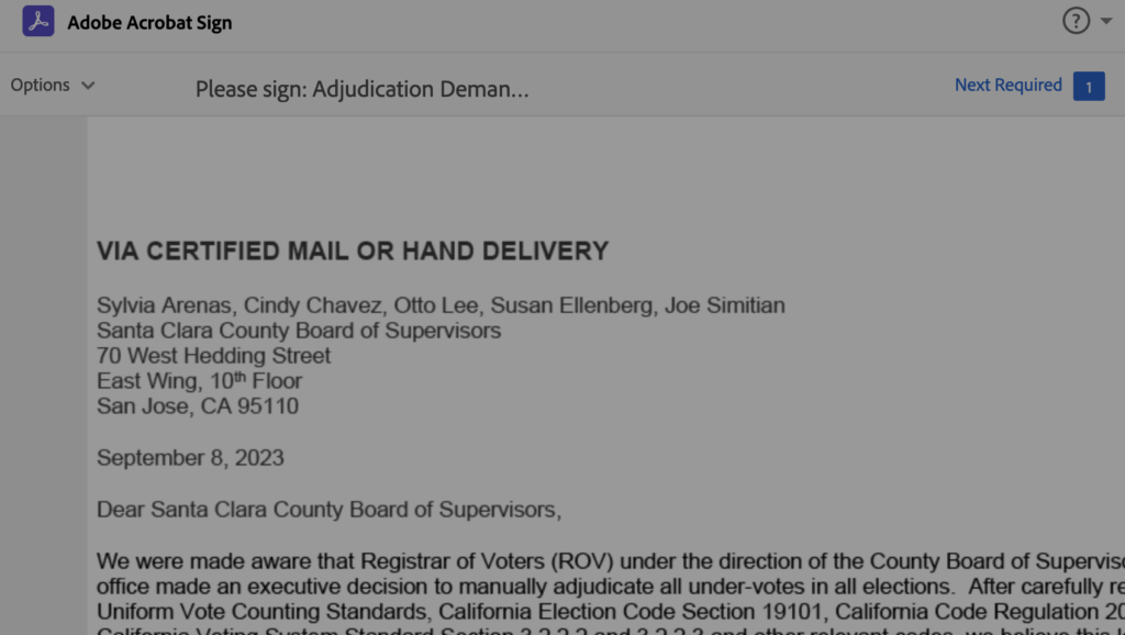 请在我们准备好的抗议书上上签名。强烈要求SCCROV尽快改变做法,停止对under vote 的选票进行人工审核