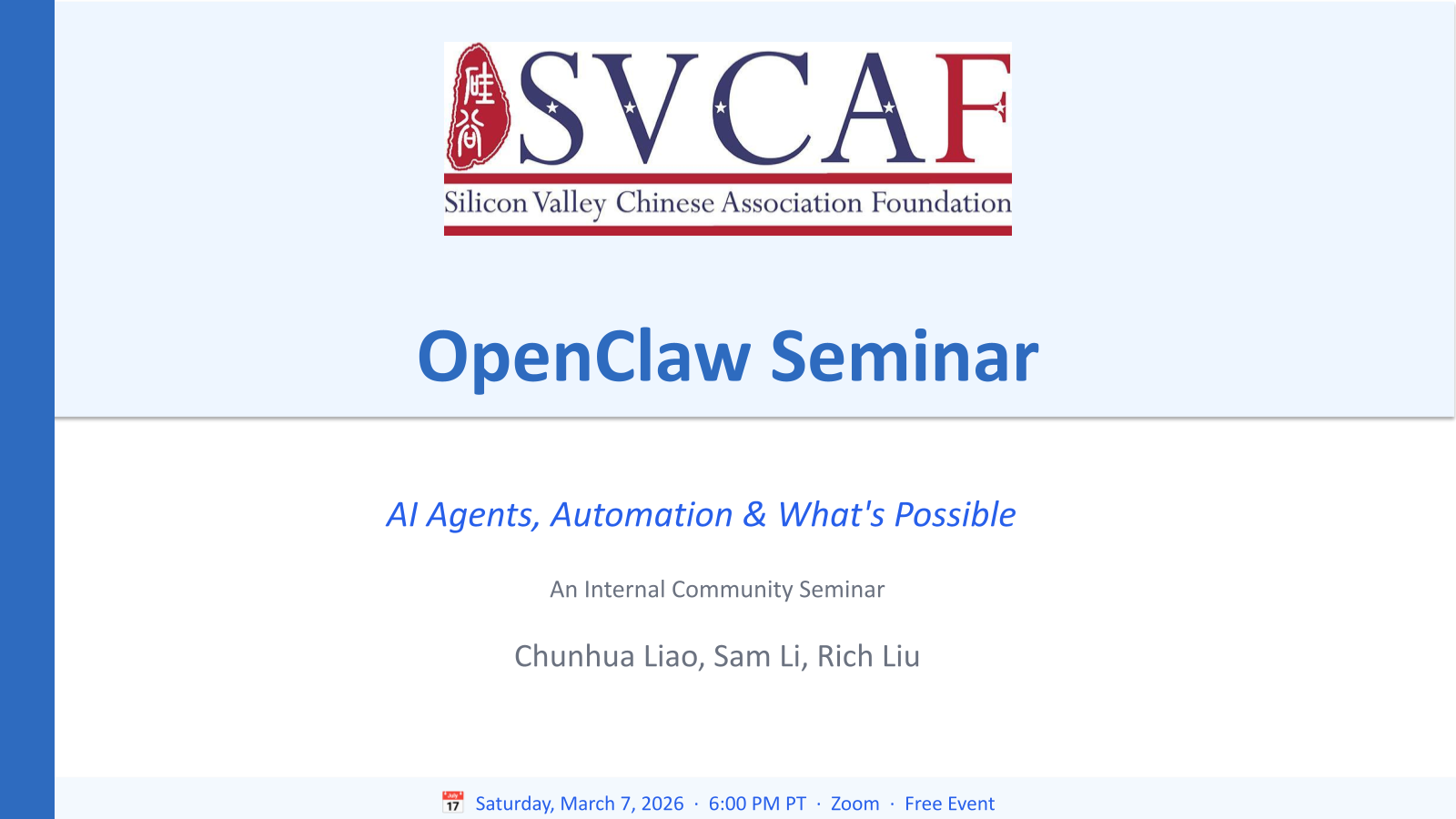 On Saturday, March 7, 2026, SVCAF hosted its first internal OpenClaw Seminar — a community event bringing together board members, volunteers, and curious community members to explore how AI agents are transforming the way our organization operates.